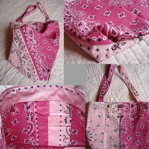 夏の注目バッグ/ラフコーデに♩USA バンダナ リメイクバッグ/通勤通学 ショッピング 旅行 トラベル リゾート 海 ビーチ レジャー フェス…/バンダナバッグ オリジナルバッグ トートバッグ 肩かけ ショルダーバッグ エコバッグ サブバッグ マザーズバッグ/たっぷり収納 大容量 丈夫 軽い 軽量 縦長 マチあり/メンズ レディース ユニセックス ファッション 夏コーデ お洒落 おしゃれ カジュアル シンプル バイカラー ピンク ハンドメイド/送料無料 | *kk1030nona*使える布小物のハンドメイドShop